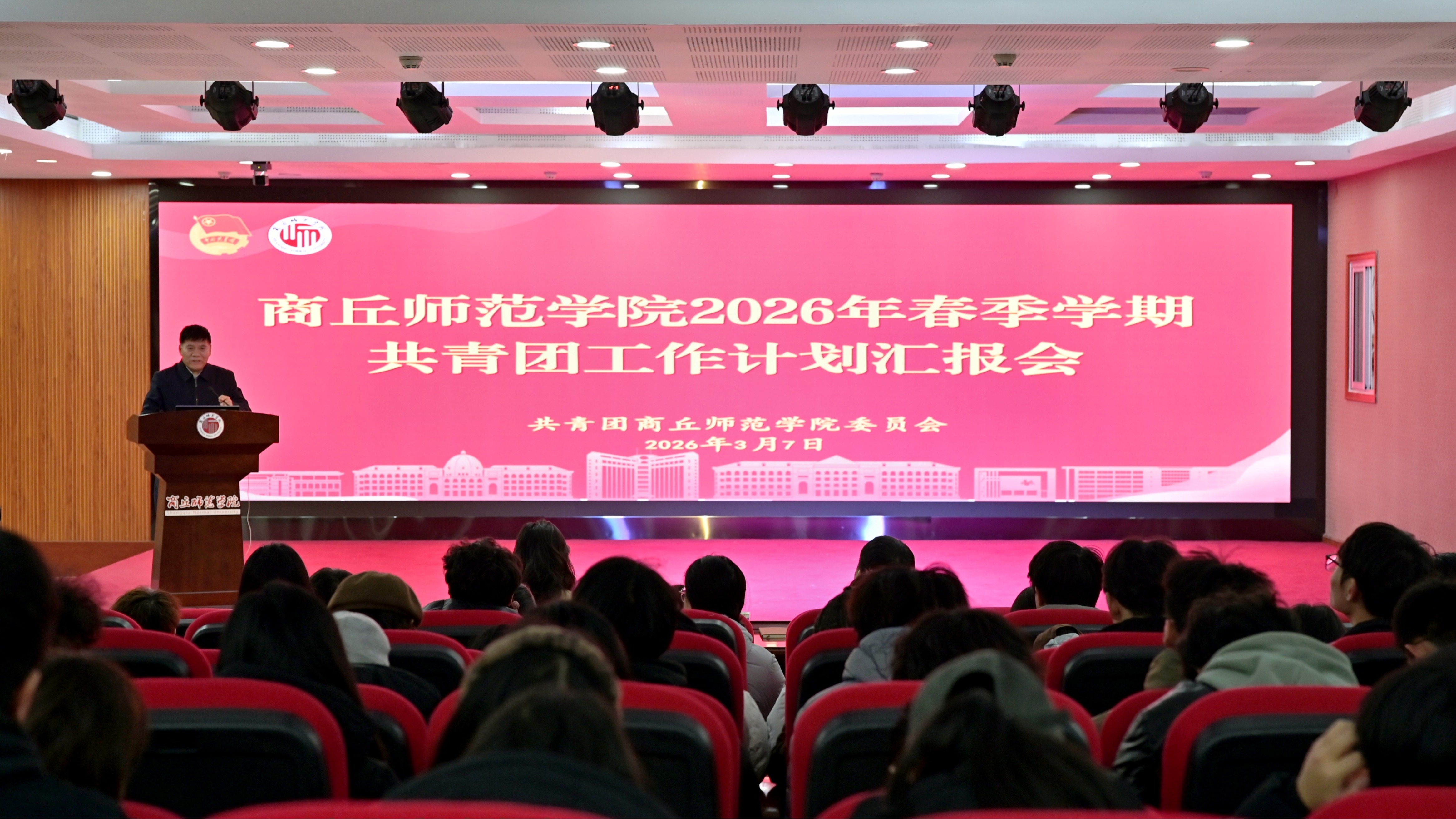 3月7日上午,我校召开2026年春季学期共青团工作计划汇报会暨部署会。校党委副书记吴金山出席会议并讲话。校团委全体工作人员、各学院团委书记及负责人、青年学生代表参加会议。会议由校团委书记刘培培主持。