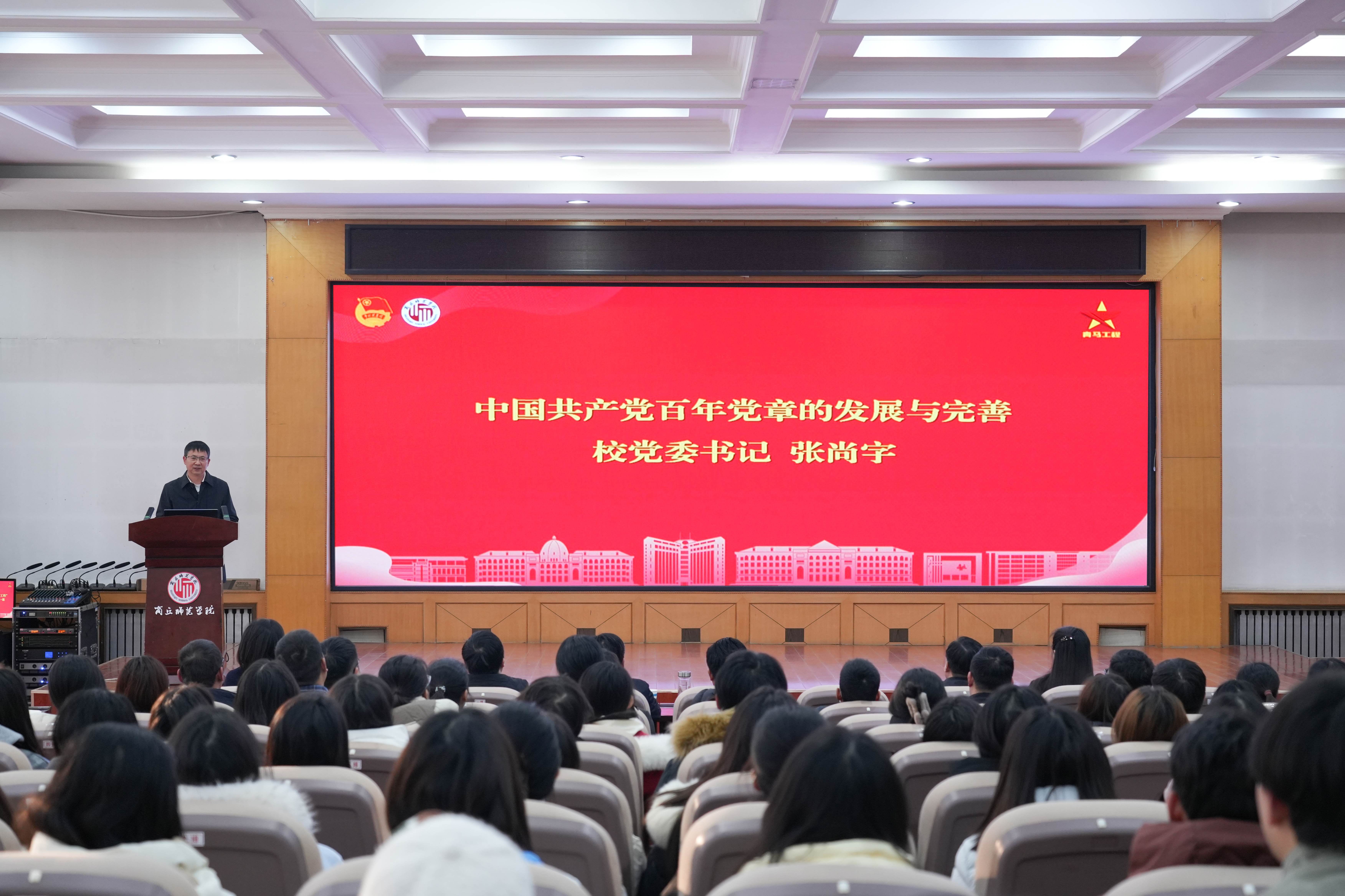 张尚字以《中国共产党百年党章的发展与完善》为题讲授开班第一课。授课紧扣党章百年发展的历史脉络与时代价值,从党章的基本概念与发展历程、党的二十大对党章的修改、党章的主要内容和以党章为镜,不断改造世界观等四个部分系统展开,既全景回溯了党章伴随党百年奋斗的发展轨迹,又深刻阐释了其作为党的根本大法的理论精髓与实践要求,生动展现了党章与时俱进的理论品格及其与民族复兴伟业同频共振的内在逻辑,并勉励全体学员要深学细悟党章精神实质,准确把握实践要求,自觉把党章要求融入思想淬炼、政治历练、实践锻炼全过程,坚定理想信念、锤炼过硬本领、永葆政治本色,在全面建成社会主义现代化强国的新征程上发挥先锋模范作用,为全面推进中华民族伟大复兴而团结奋斗。